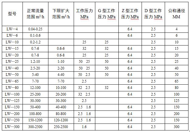 1.流量計規(guī)格、基本參數(shù)和性能指標(見表一)