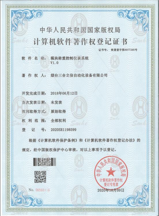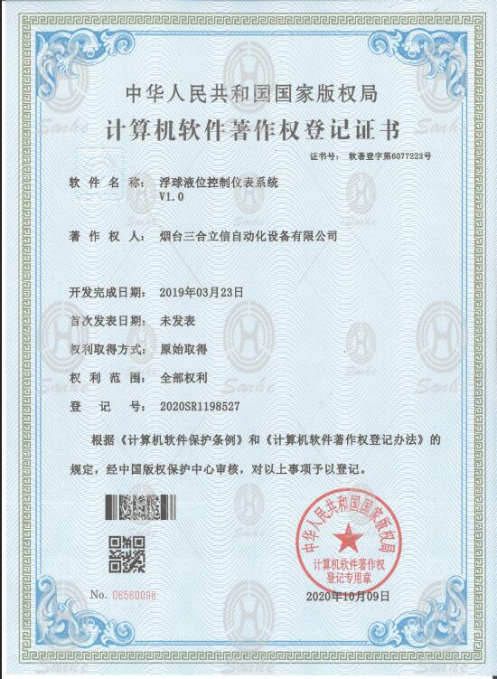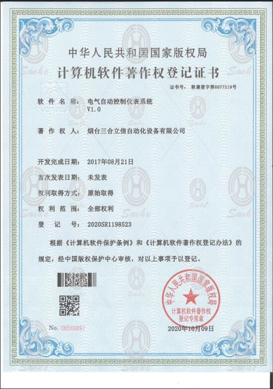 電氣自動(dòng)控制儀表系統(tǒng)軟件著作權(quán)證書