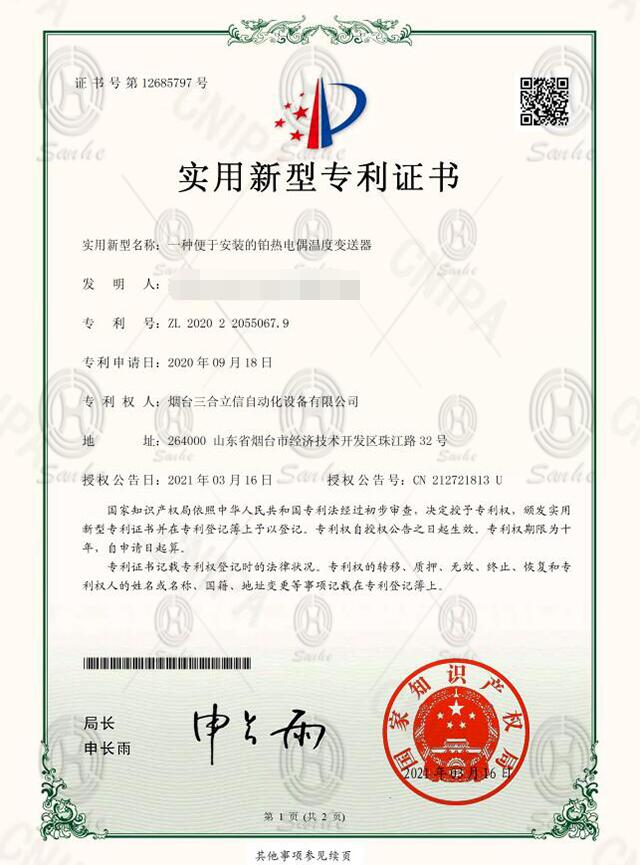 一種便于安裝的鉑熱電偶溫度變送器