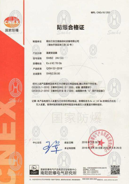 溫度變送器防爆證