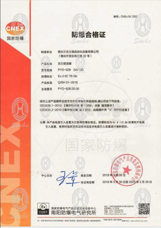 壓力變送器防爆證